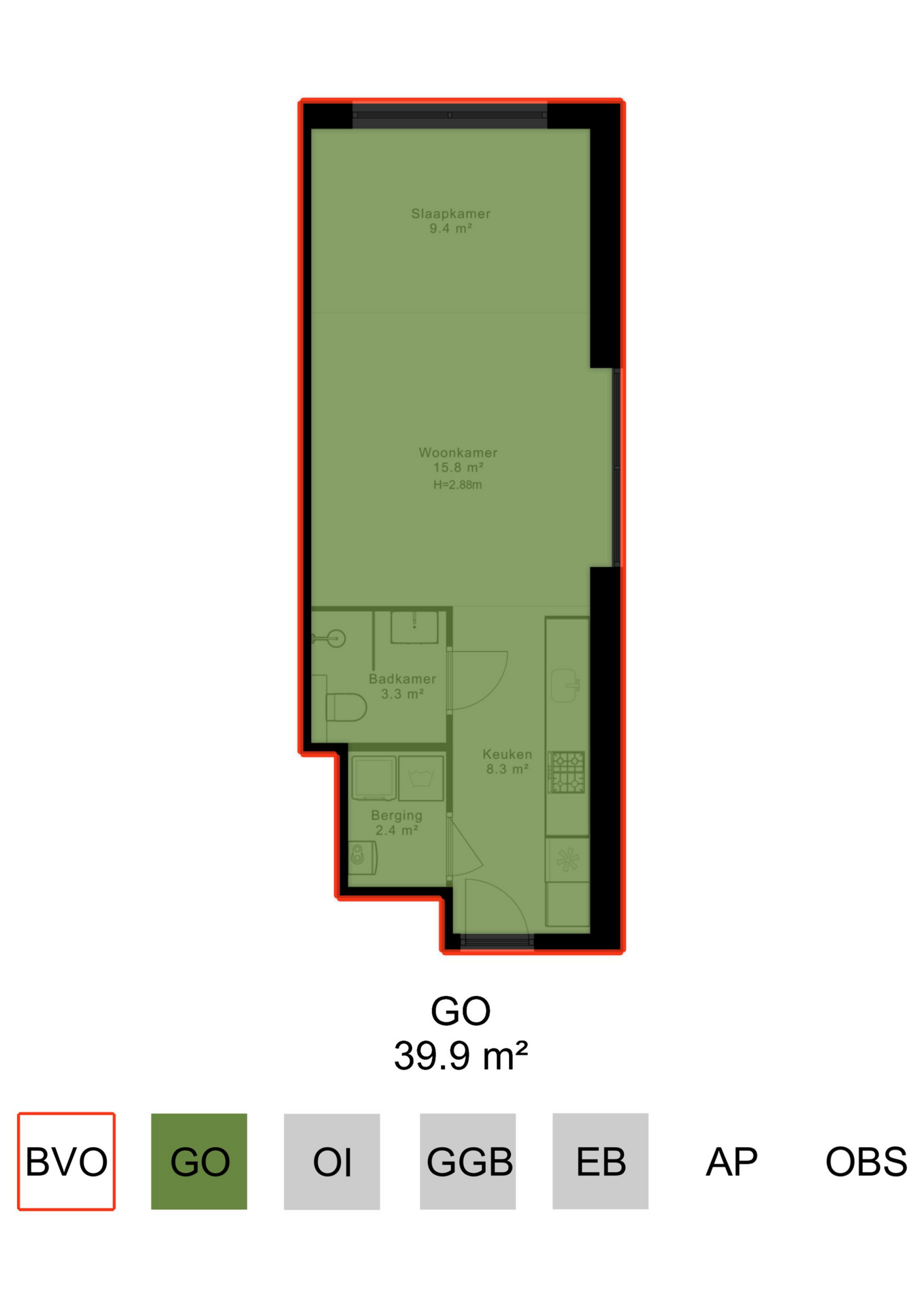 - Studio apartment of 40 m² (measured in accordance with NEN 2580)
