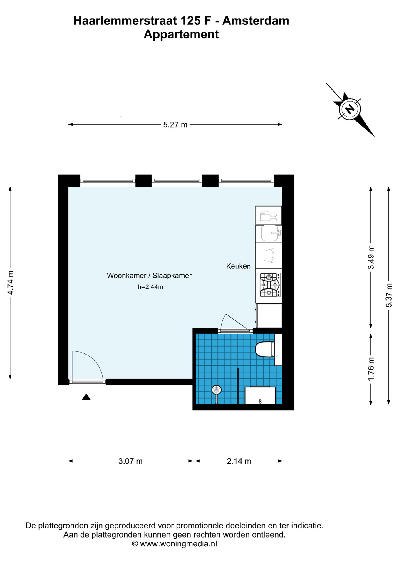- Apartment area 27 m² (measured in accordance with NEN-2580 measurement instructions)