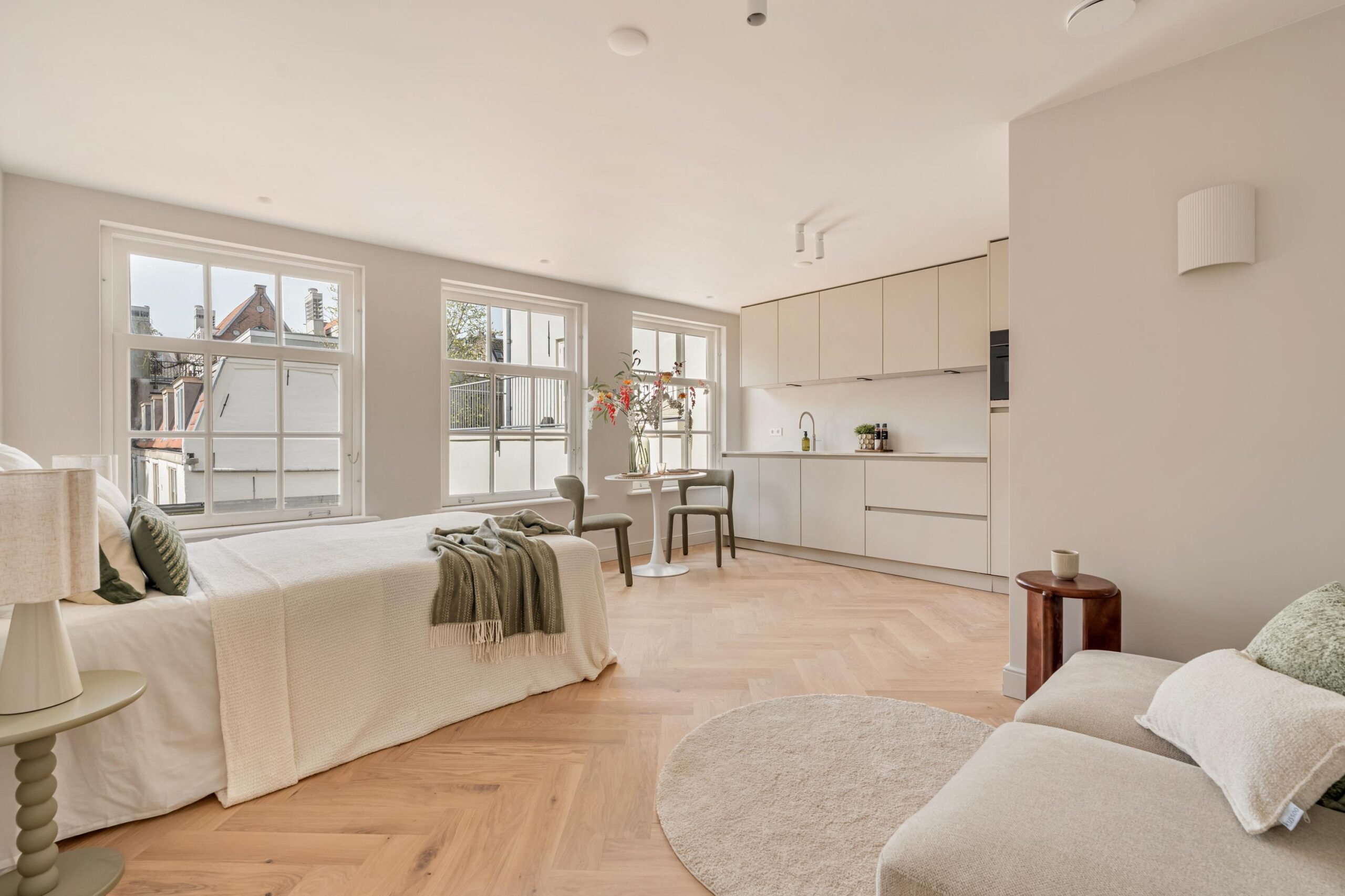 An efficiently laid-out studio apartment (approx. 27 m²) with a bright living area at the back and an open kitchen with built-in appliances. The apartment features a neat bathroom and is located on freehold land. A compact and comfortable home in a lively location on Haarlemmerstraat, right in the heart of Amsterdam.