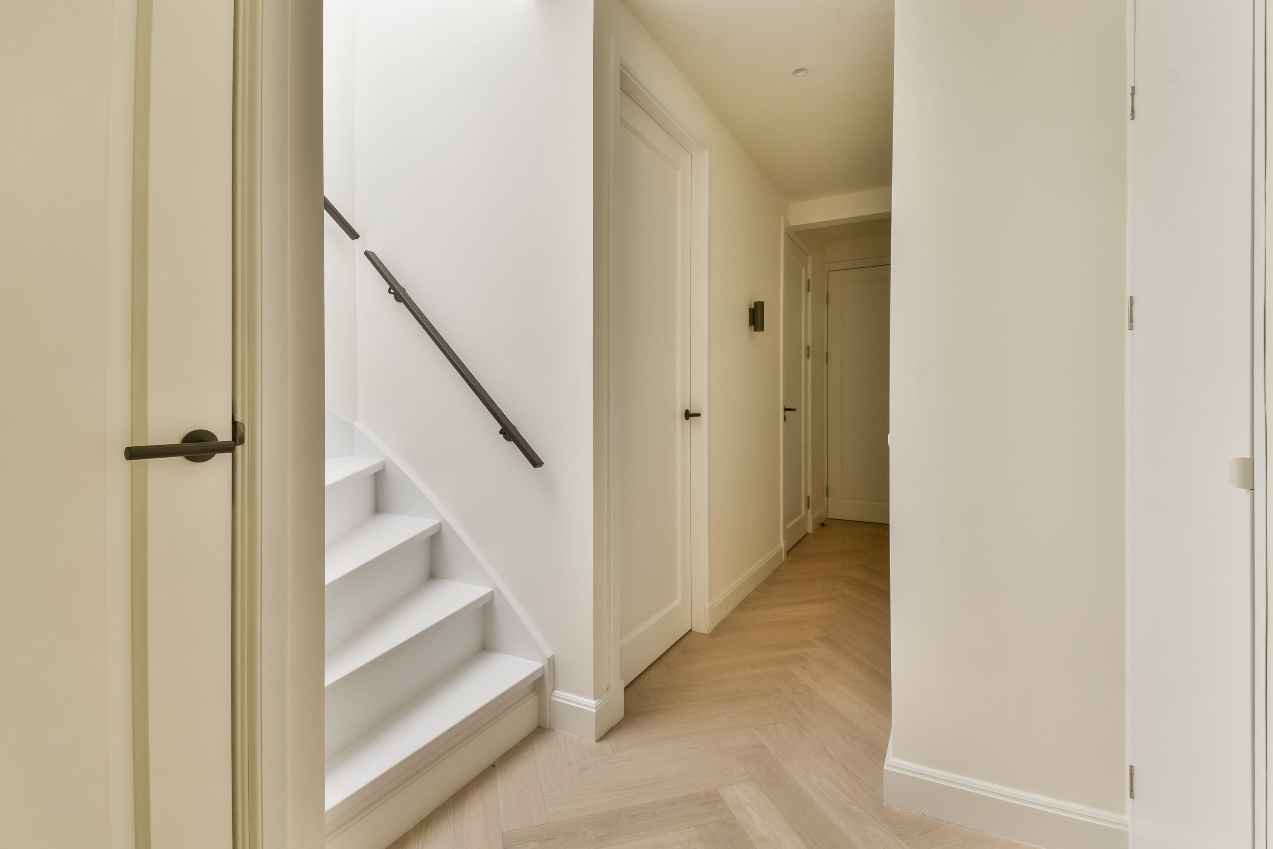 Upon entering, you step into the central hallway, which provides access to almost all rooms. From here, you walk straight into the living area.