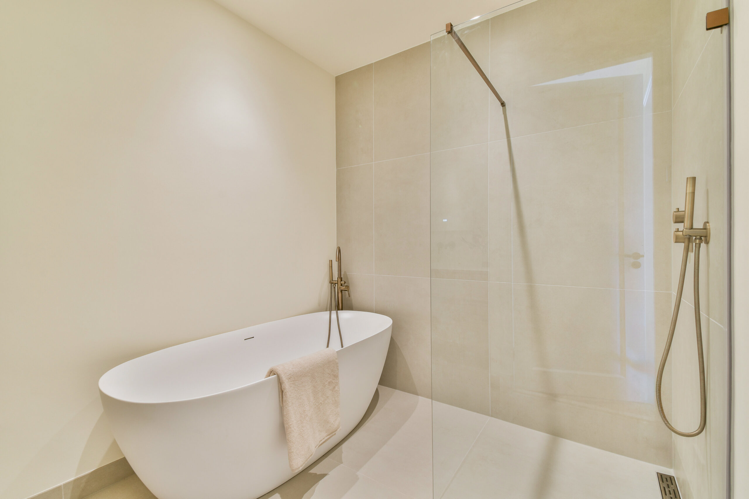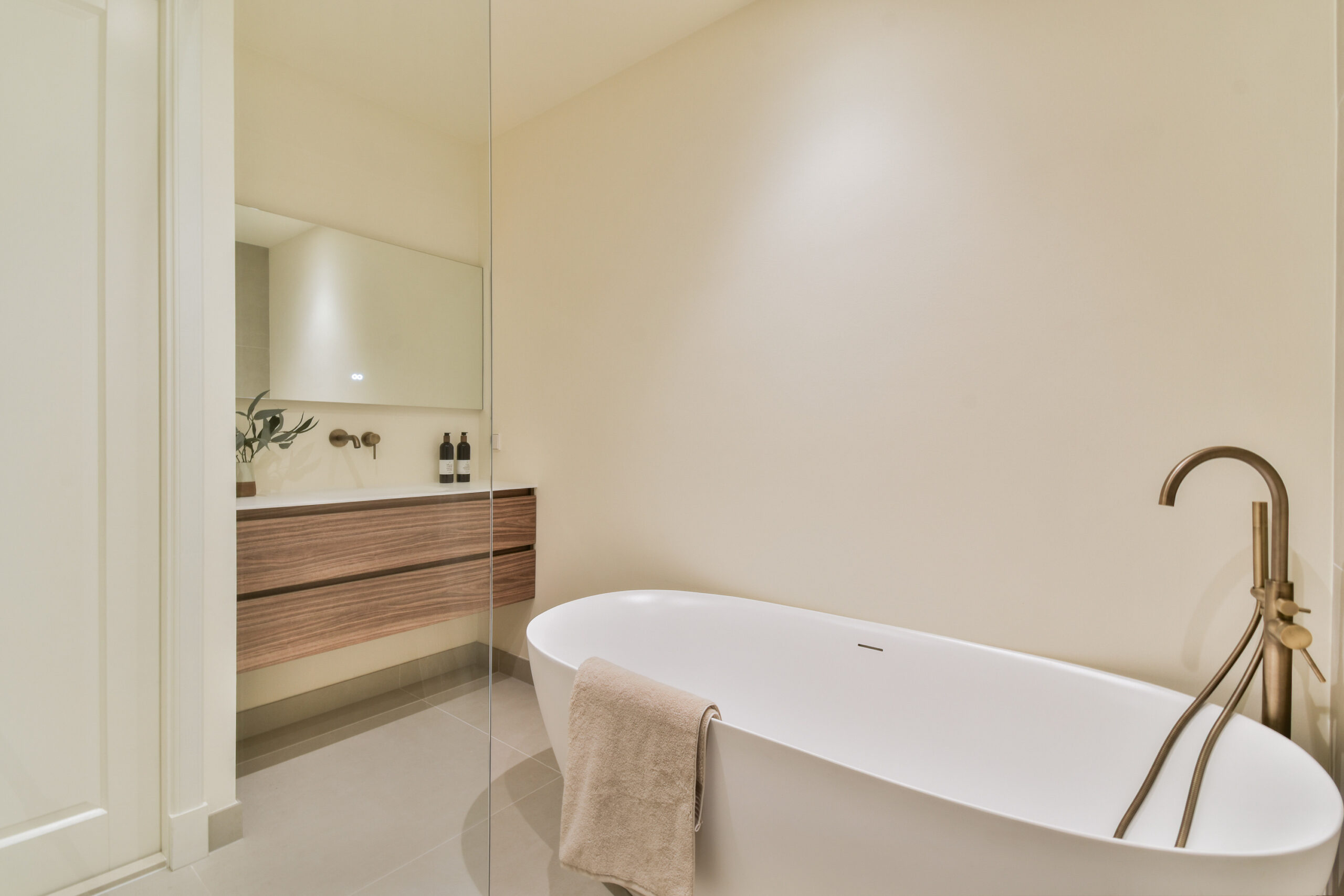 Back in the hallway, on the right-hand side, you will find the separate toilet and the bathroom. The bathroom is fitted with a bathtub, shower, and washbasin. At the rear of the apartment are two well-sized bedrooms, which can be practically arranged as a main bedroom and a study or guest room.