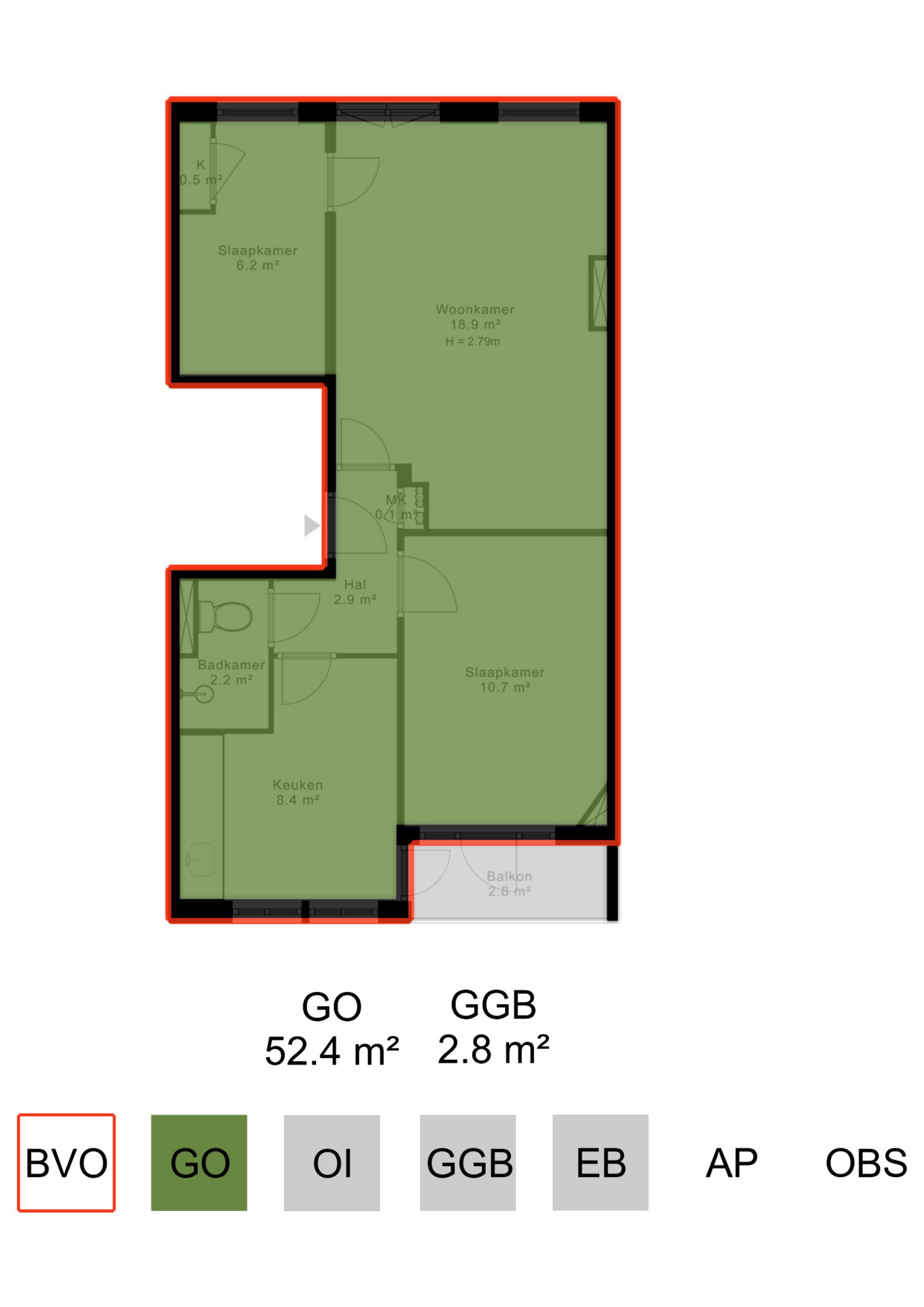 - Apartment right of 52.4 m² (measured in accordance with NEN-2580 measurement guidelines)