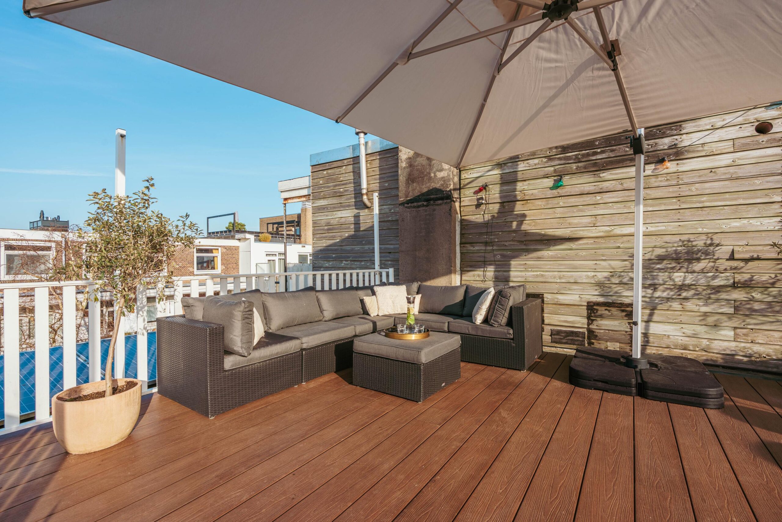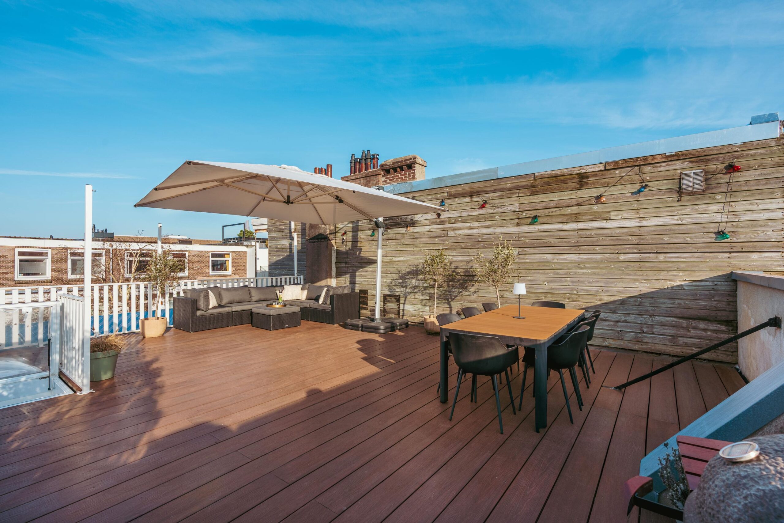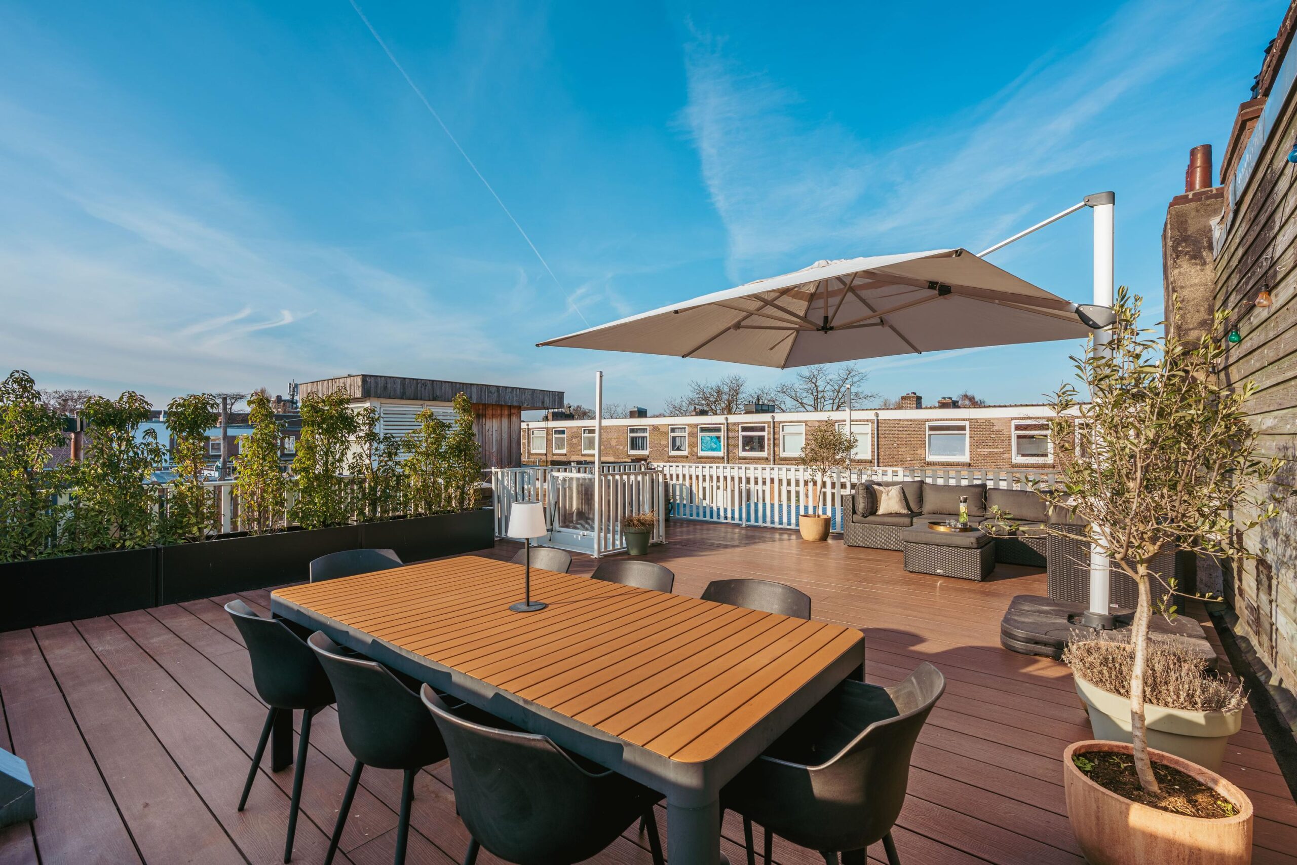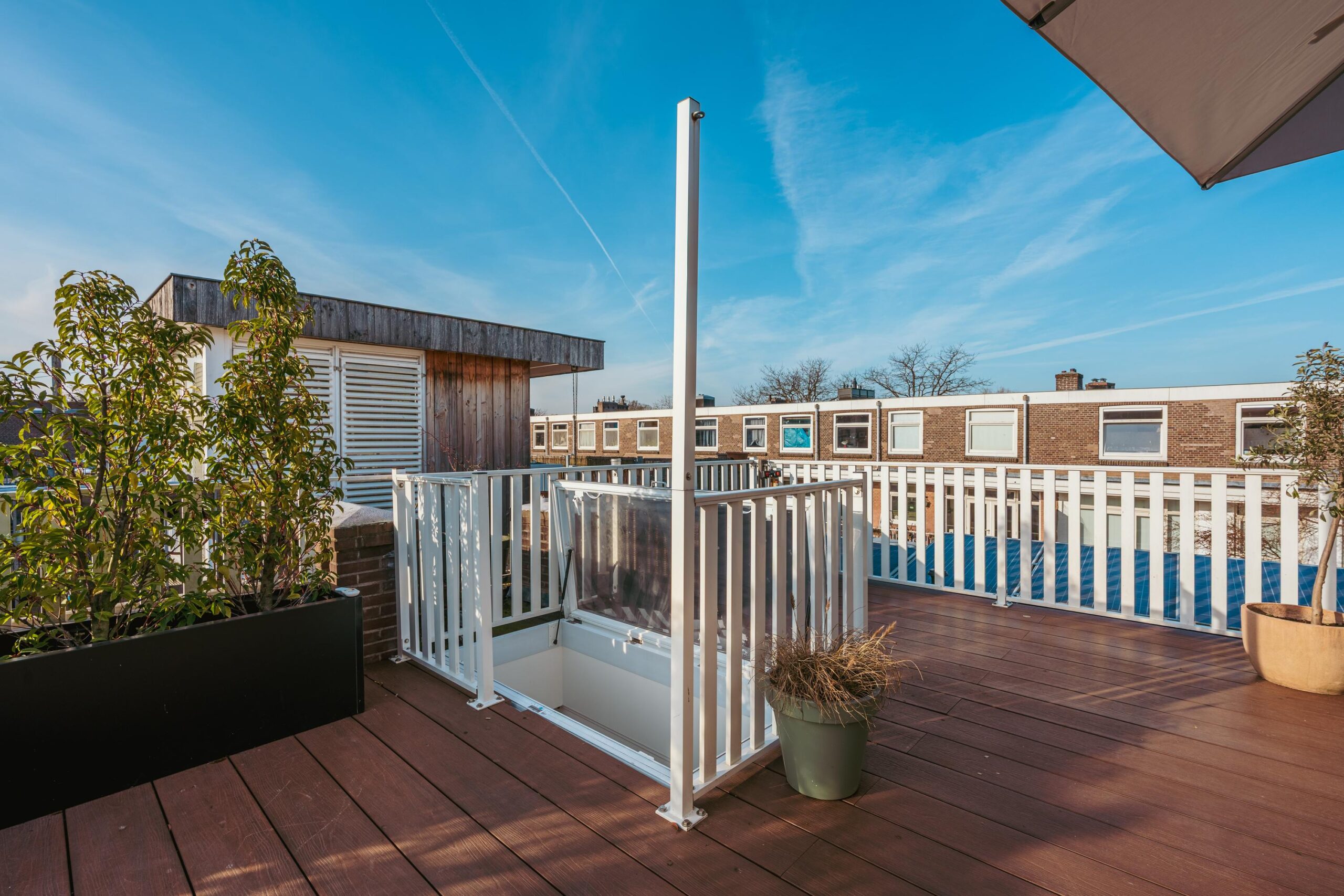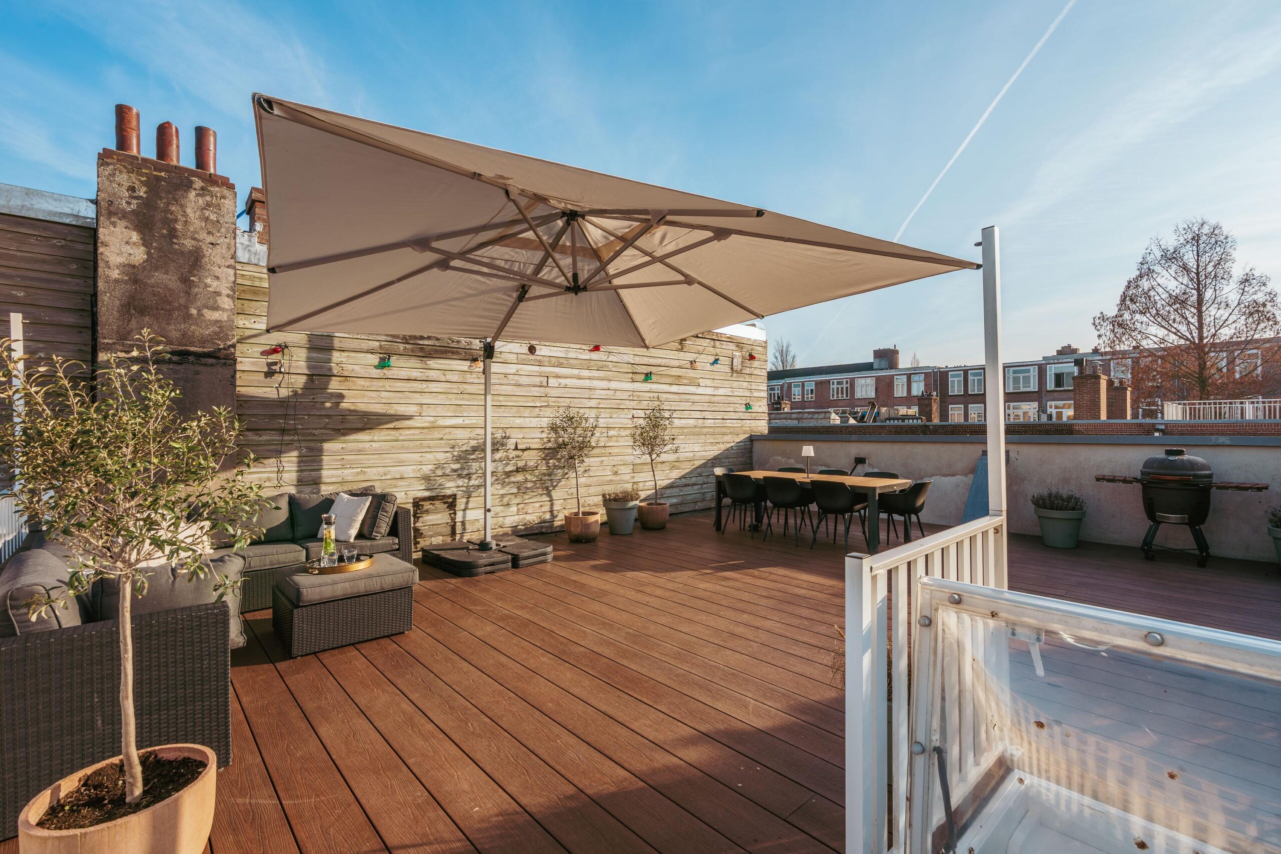 Unique and exceptionally bright apartment of approx. 88 m² in the popular Rivierenbuurt, featuring a private entrance, two well-proportioned bedrooms and an absolute showstopper, an exceptionally spacious roof terrace of no less than approx. 68 m². The roof terrace is very sheltered and offers a high level of privacy. Here you can enjoy sunshine throughout the summer months, with ample space for long al fresco dinners or spending entire days outdoors. In addition, the apartment also features two balconies at the front and rear.
