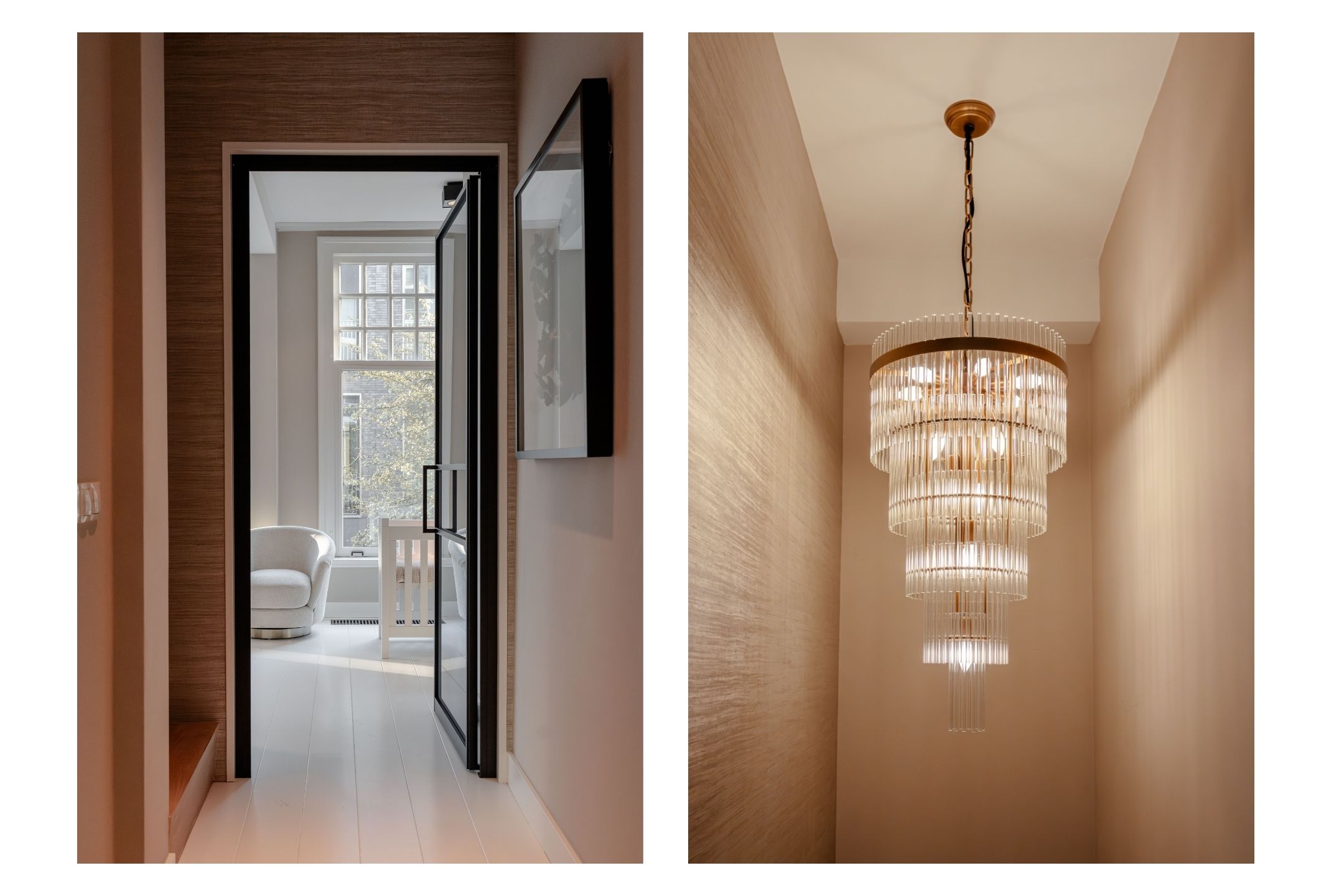 Through the private entrance, you enter the vestibule and hallway, which provides access to the rooms on the ground floor. Here you will find a separate toilet with a washbasin and a practical storage cupboard with access to the basement, consisting of two well-usable spaces—ideal for storage, a hobby room or a wine cellar. The generous living room extends across the full length of the property and is accessed through an elegant steel-look door. Thanks to the high ceilings and large windows, the living area is wonderfully bright, offering a comfortable seating area with a gas fireplace at the front and ample space for a large dining table at the rear.