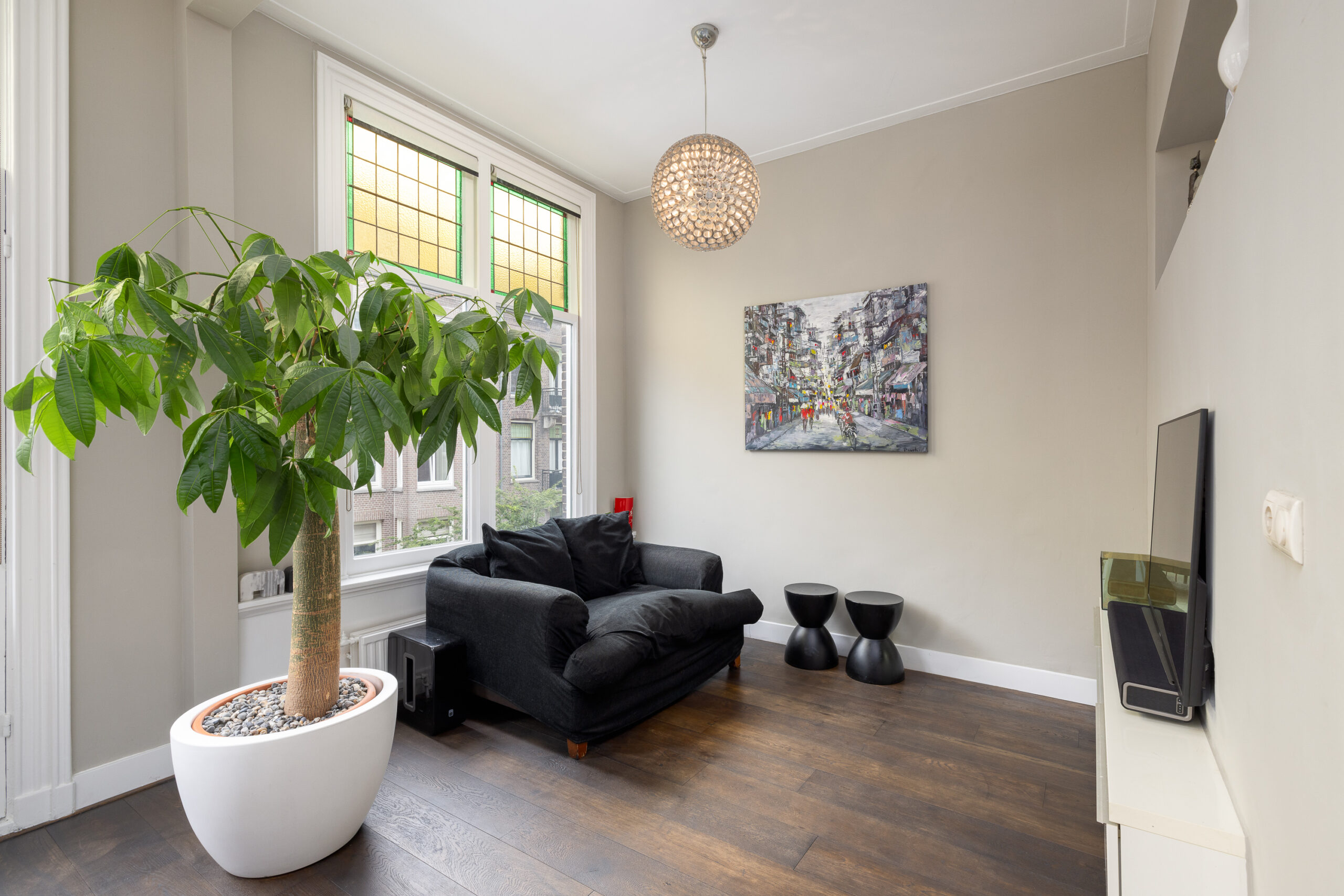 The apartment is located in one of the most charming spots on Valeriusstraat in Amsterdam Oud-Zuid, between Valeriusplein and Amstelveenseweg. The Vondelpark, as well as the many (neighborhood) shops, lunchrooms, restaurants, and supermarkets, are in the immediate vicinity of this beautiful house. By bike, you can reach the city center and Zuid station in 10 minutes. Various primary and secondary schools and the VU Medical Center are easily and quickly accessible. Additionally, The British School of Amsterdam is just a 2-minute walk from the house. Valeriusstraat is a one-way street. The neighborhood is well connected to public transportation, with taxi, tram, and bus connections at Haarlemmermeerstation within walking distance, and you can reach the A10 Ring Road (S108) by car in 5 minutes. A parking permit for one car can be obtained immediately.