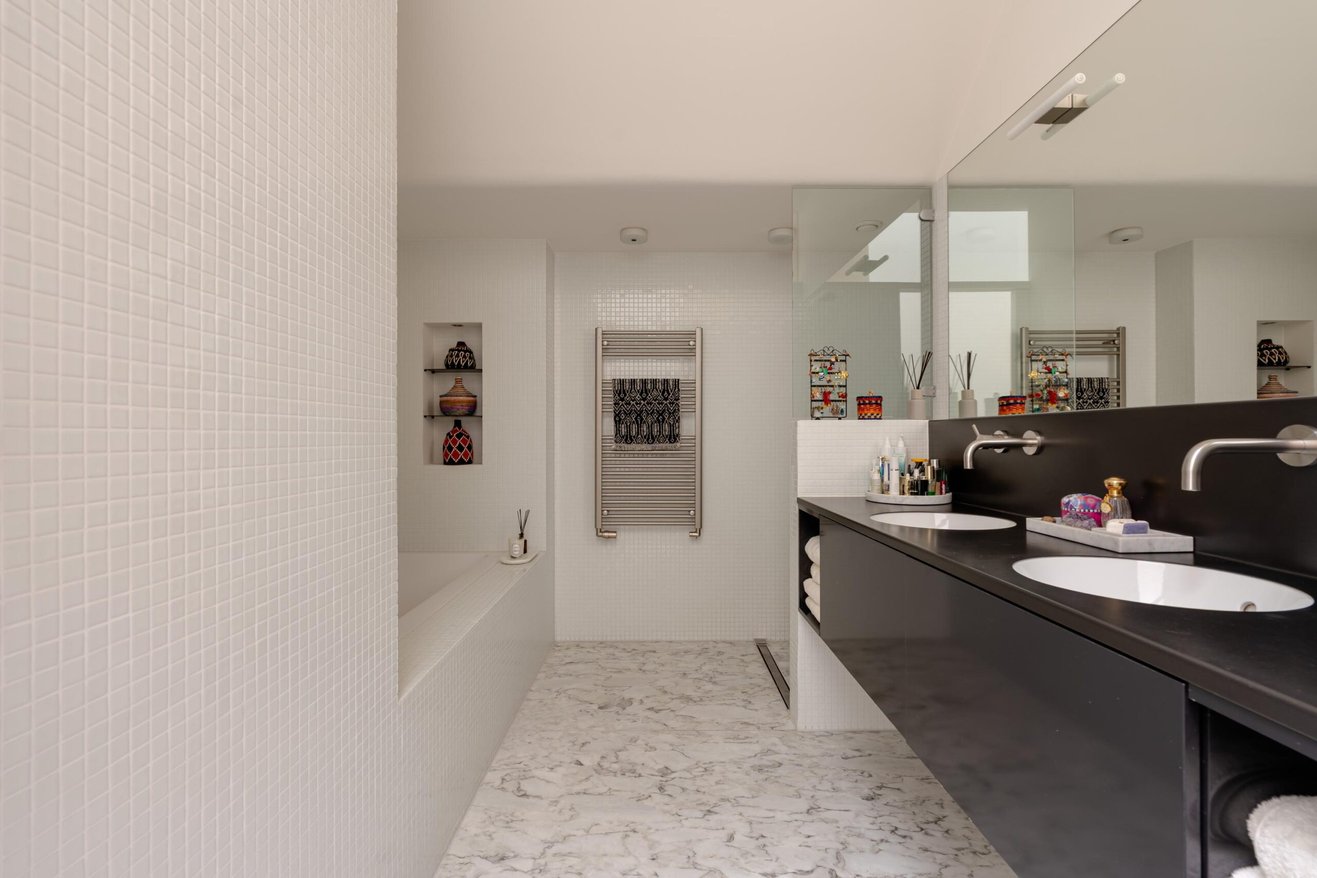 In 2020, the property was fitted with 14 solar panels, contributing to its sustainability and resulting in an Energy Label A. During the renovation in 2012, significant attention was paid to living comfort. The property benefits from high-quality sound insulation, allowing for peaceful living despite its central location. There is also an existing lift shaft, currently used as a storage cupboard, which can be converted into a passenger lift with limited modifications, making the home suitable for long-term accessibility. Furthermore, the house is fully wired for data, internet, telephone, and television. Programmable switches allow for efficient control of lighting and energy use according to personal preferences, including an “all-off” function to switch off all lights at the touch of a button.