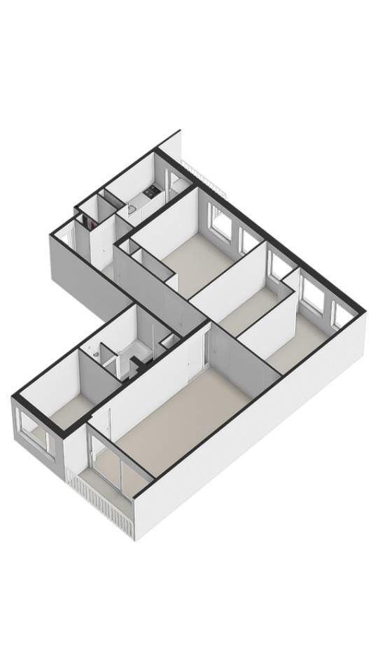 Via the communal entrance, staircase, or lift, you reach the apartment, which is situated on the fifth floor. Upon entering, you arrive in a spacious hallway that leads to the living room at the end. This well-arranged space is south-facing, allowing abundant natural light to fill the room throughout the day. There is ample room for both a comfortable seating area and a dining table, and from here you have access to the sunny south-facing balcony. Adjacent to the living room is a fourth bedroom, which is perfectly suited for use as a study, hobby room, or guest bedroom. The hallway also provides access to three additional bedrooms of varying sizes, each benefiting from generous natural light and flexible layout options. Next to these rooms you will find the kitchen, located immediately to the left upon entering. The kitchen is equipped with an induction cooktop, built-in extractor, oven, sink, and ample storage space. From the kitchen, you have direct access to the second balcony, a pleasant spot to enjoy the morning sun in peace. Centrally positioned in the apartment is the bathroom, fitted with a bathtub, washbasin with vanity unit, and a separate shower. Additionally, the hallway includes a meter cupboard, a convenient storage closet, and a separate toilet with a washbasin. The apartment has a total living area of 86.5 m² and comes with a private storage room on the ground floor.