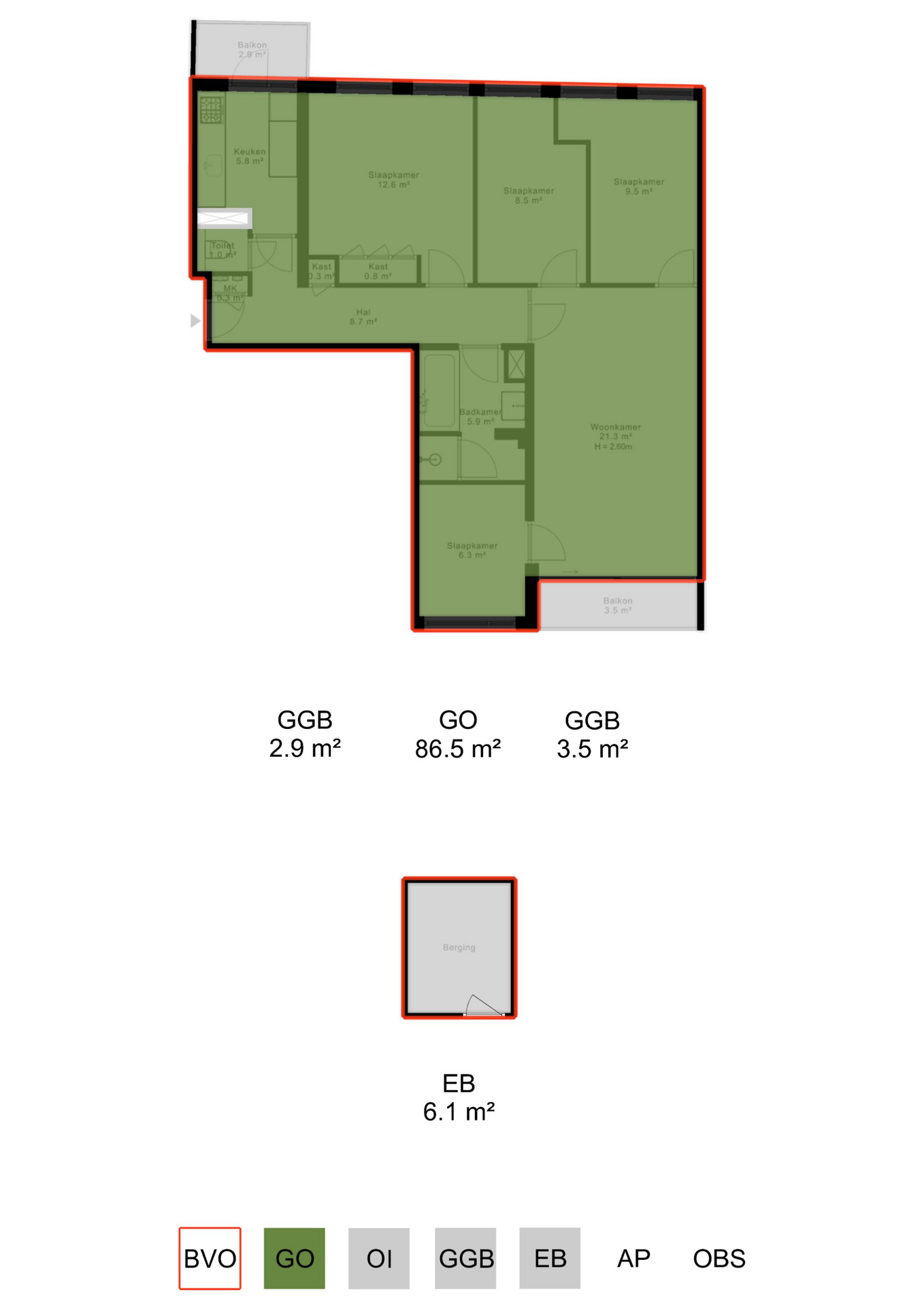 - Apartment right of 86.5 m² (measured in accordance with NEN2580 guidelines);
